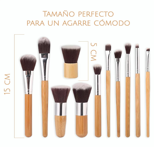 - KIT ECOLÓGICO: Con 11 brochas de Bambú natural, el conjunto de brochas de ojos y cara incluye todo lo que necesitas para maquillaje profesional: Brochas de sombra de ojos, brochas de labios, brochas de mezcla , pincel delineador de ojos, de cejas, correctores, pestaña, polvos, fijador. No contaminan el ambiente y son cruelty free.